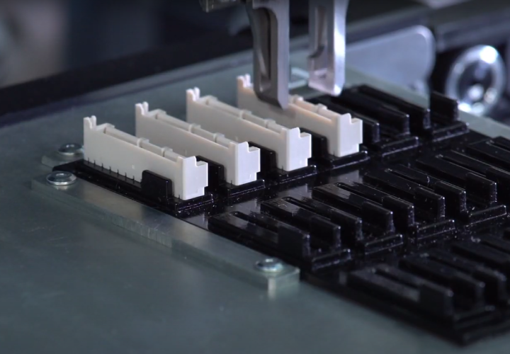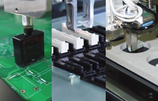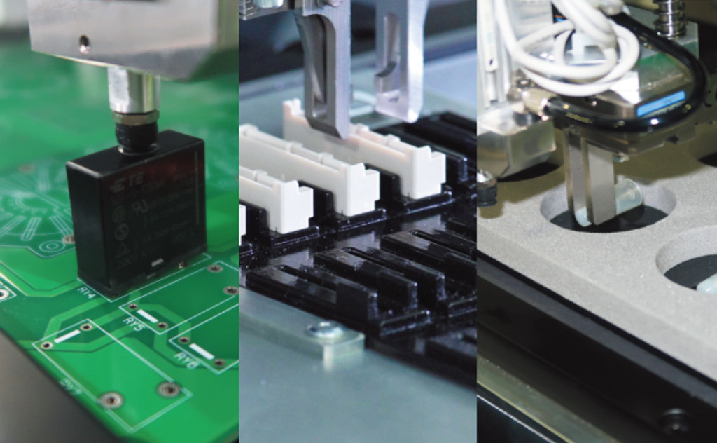 This an all-in-one machine that can handle assembling boards, transferring trays, and distributing parts.