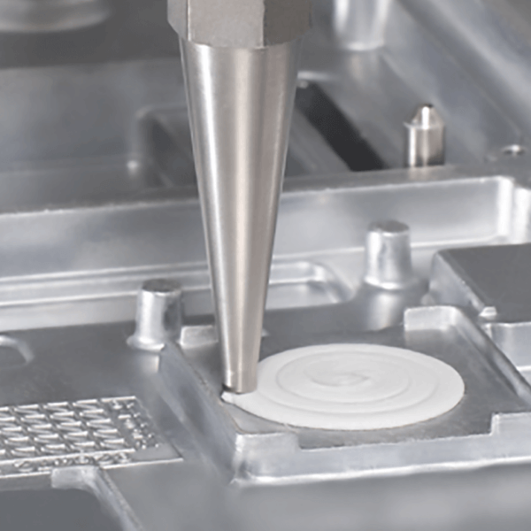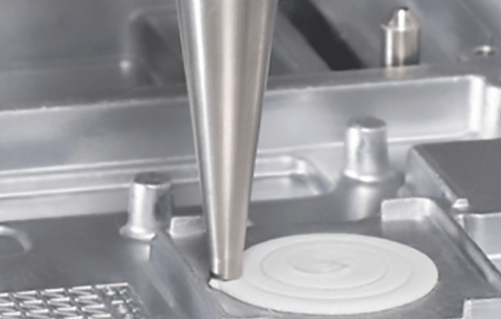 Also known as "form-in-place gasketing," this application dispenses one or two-part liquids into a groove or onto a flange that will cure to form a seal against liquids and gases. This automated process eliminates the task of assembling a die cut or pre-made gasket. Additionally, geometries can easily be modified for other designs.